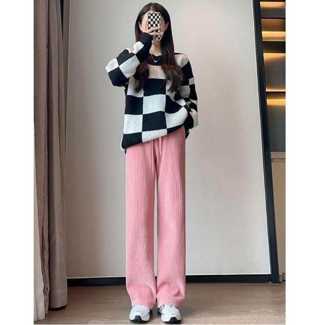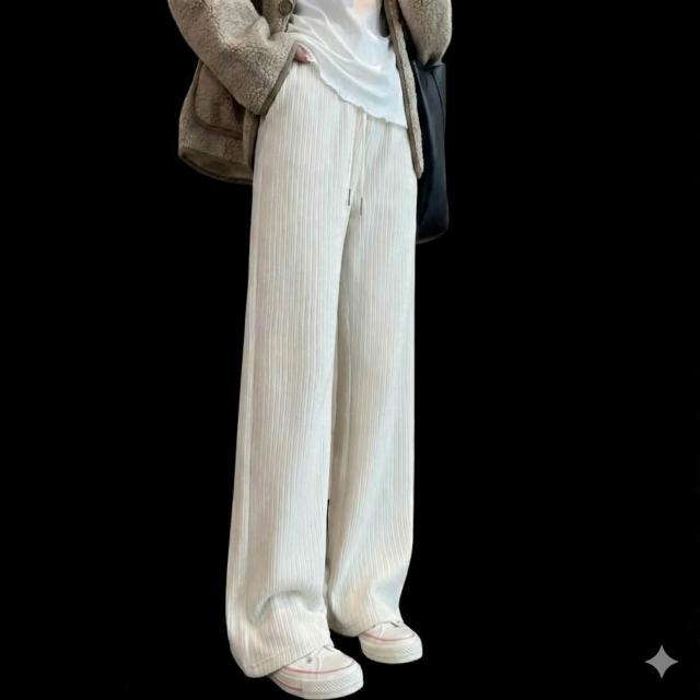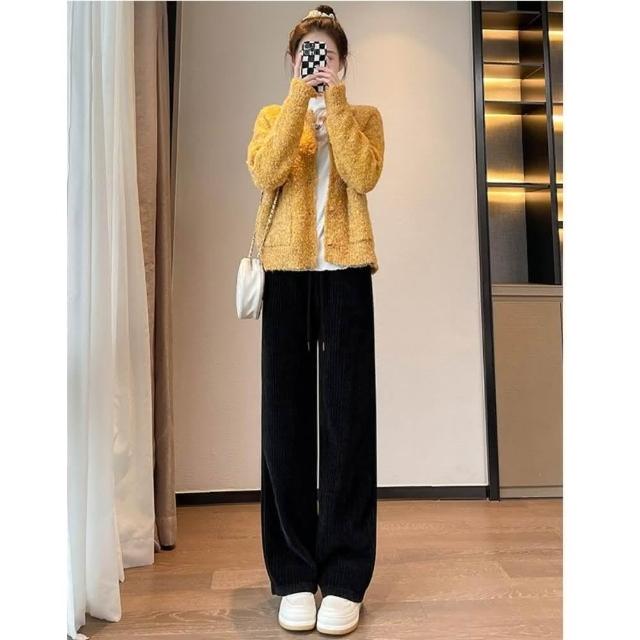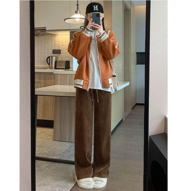 米蘭精品現貨+預購 寬管褲闊腿長褲-直筒休閒棕色燈芯絨褲女褲子5色74ix26