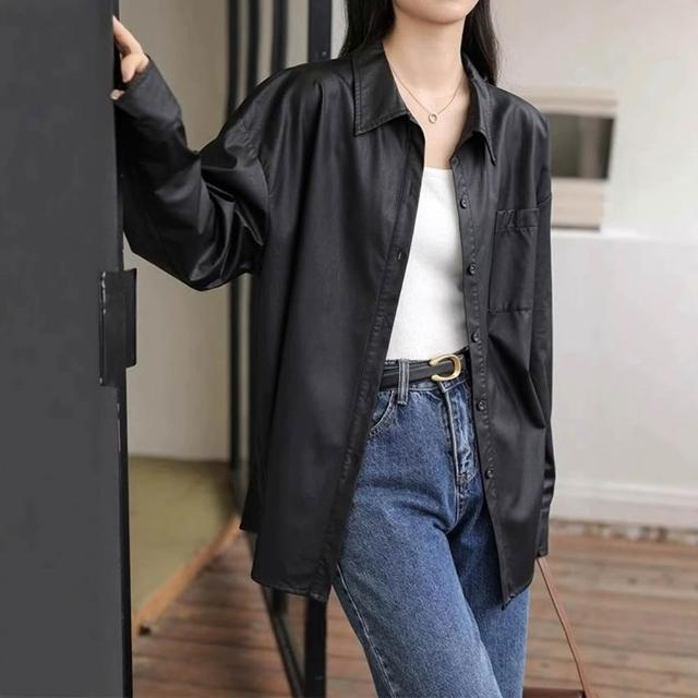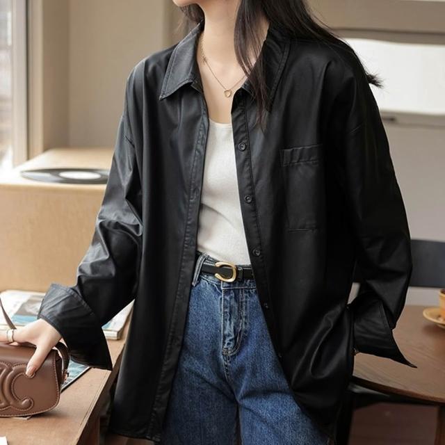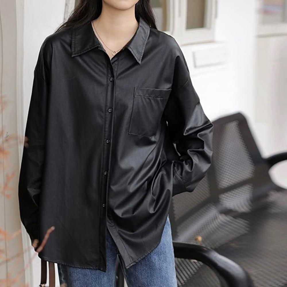 米蘭精品現貨+預購 皮衣外套長袖襯衫-PU皮復古韓版休閒女外套74km35