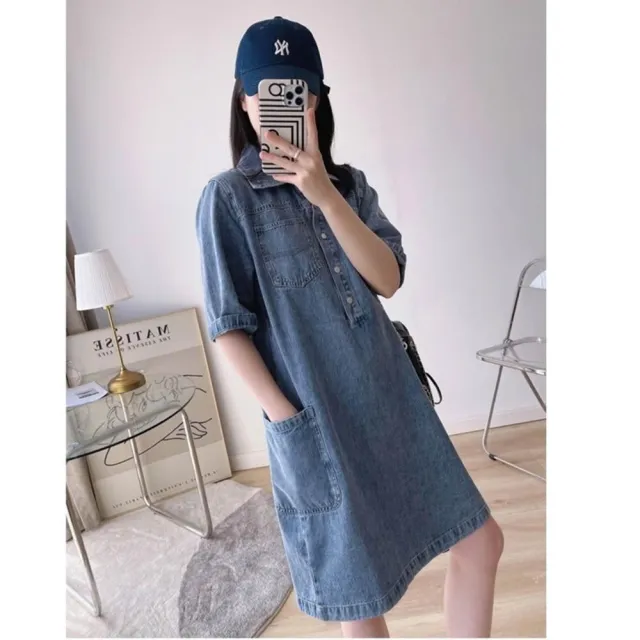 米蘭精品現貨出清 牛仔洋裝丹寧連身裙大尺碼短裙連衣裙A字裙休閒大碼女裝(短袖工裝直筒女裙子74kt4)