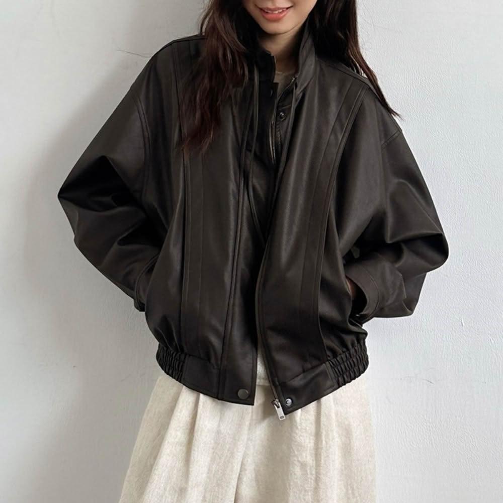 米蘭精品現貨+預購 皮衣外套機車夾克-韓版復古寬鬆防風女外套2色74kr1