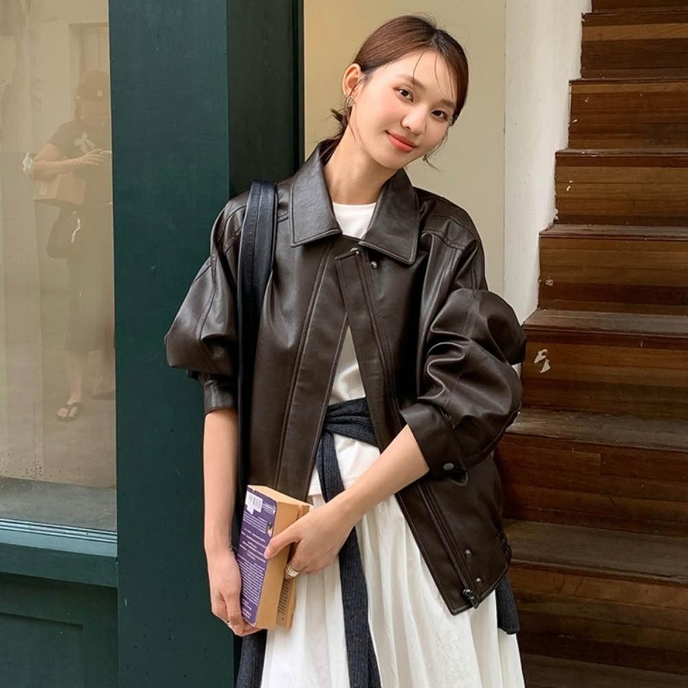 米蘭精品現貨+預購 皮衣外套機車夾克-高級感PU皮韓版防風女外套2色74kr2