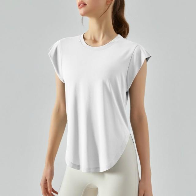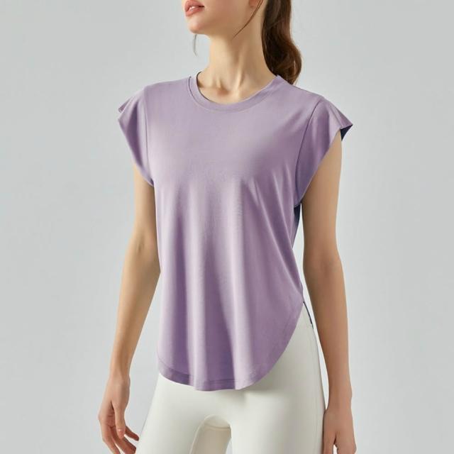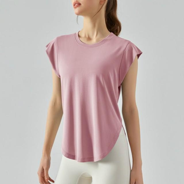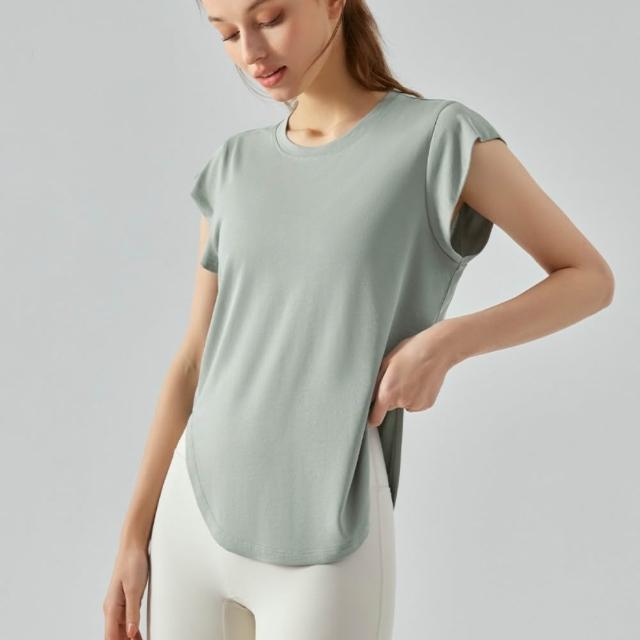米蘭精品現貨+預購 女 短袖運動服T恤瑜珈服親膚透氣速乾瑜伽服運動上衣跑步背心修身顯瘦-莫代爾蓋肩5色74ld21