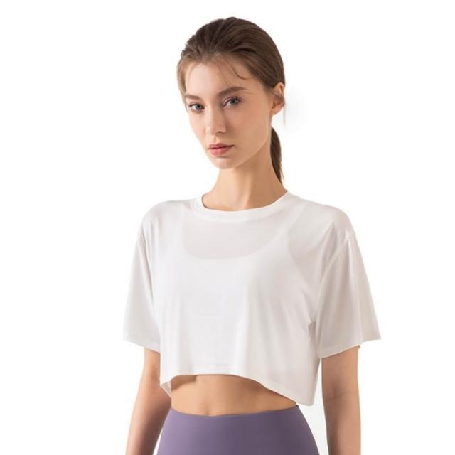 米蘭精品現貨+預購 女 短袖運動服T恤瑜珈服親膚透氣速乾瑜伽服運動上衣跑步背心修身顯瘦-露腰寬鬆圓領4色74ld27