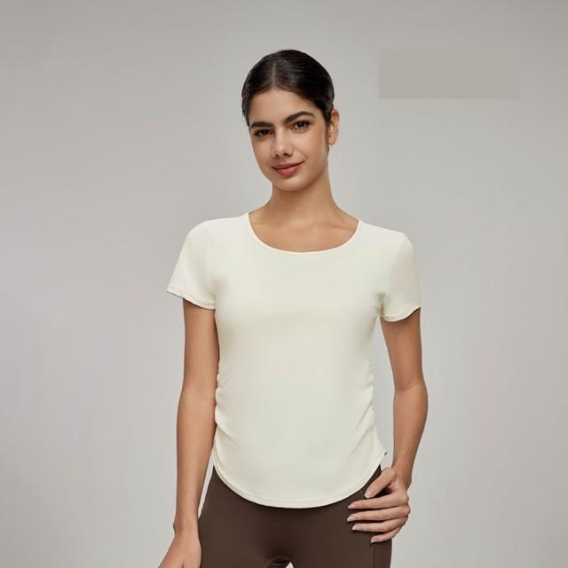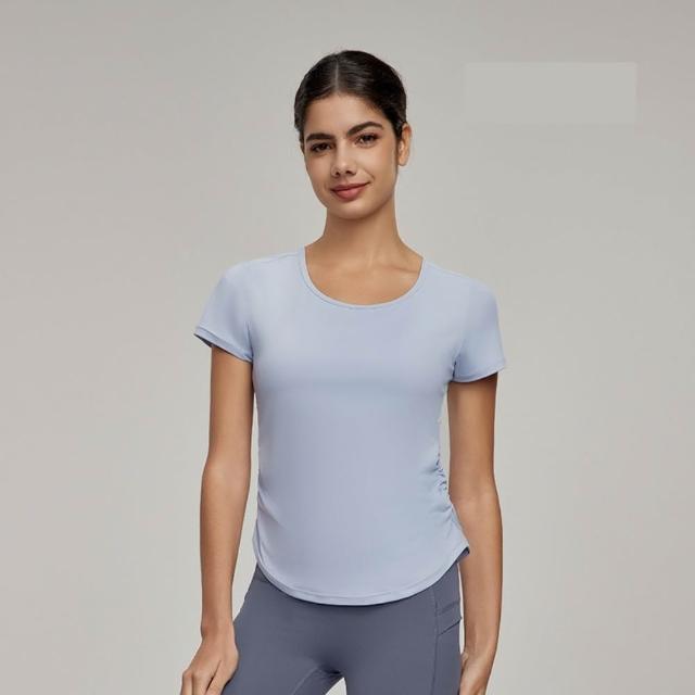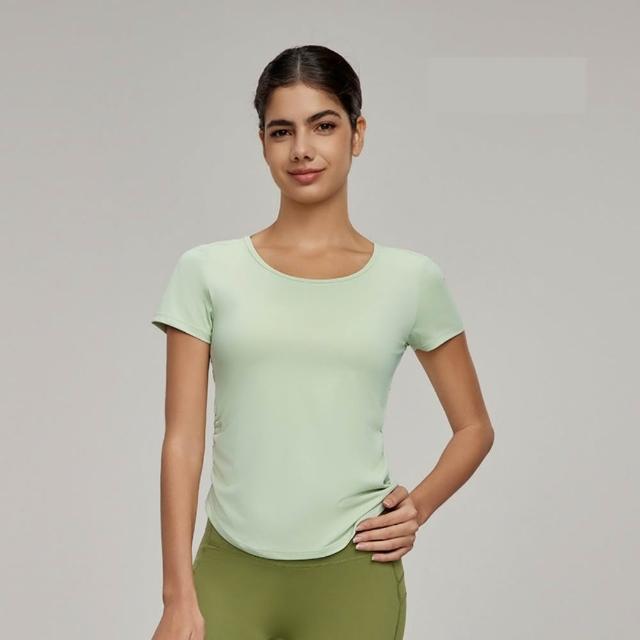 米蘭精品現貨+預購 女 短袖運動服T恤瑜珈服親膚透氣速乾瑜伽服運動上衣跑步背心修身顯瘦-原紗收腰4色74ld56