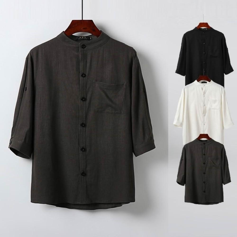 米蘭精品現貨+預購 新中式棉麻上衣棉麻襯衫短袖上衣日系亞麻休閒男裝-中國風立領3色74lk11