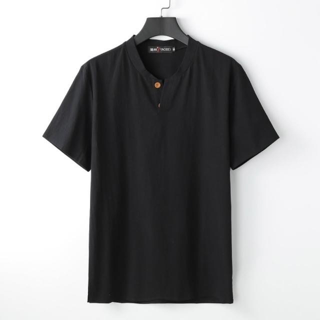 米蘭精品現貨+預購 新中式棉麻上衣棉麻襯衫T恤短袖上衣日系亞麻休閒男裝-中國風V領5色74lk23
