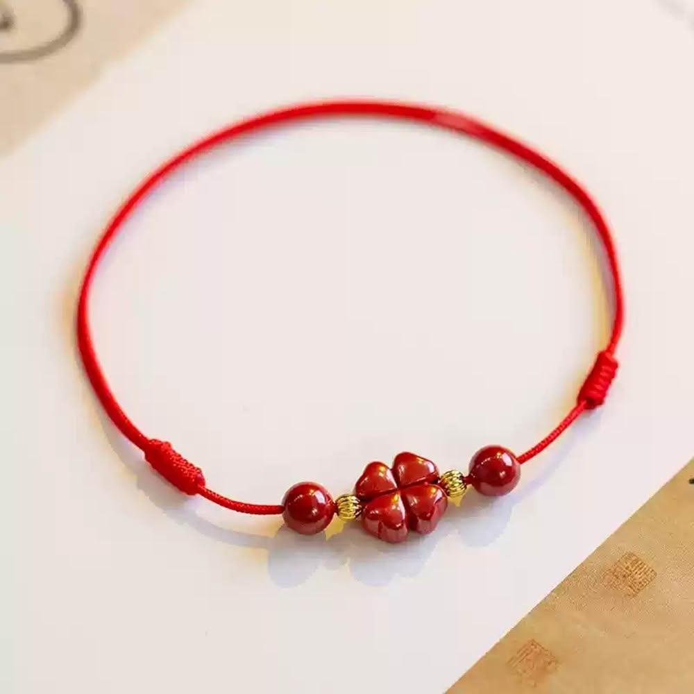 米蘭精品現貨+預購 硃砂手鍊朱砂手珠腳鍊腳繩-轉運除穢淨化招財開運四葉草招財2色74lh4