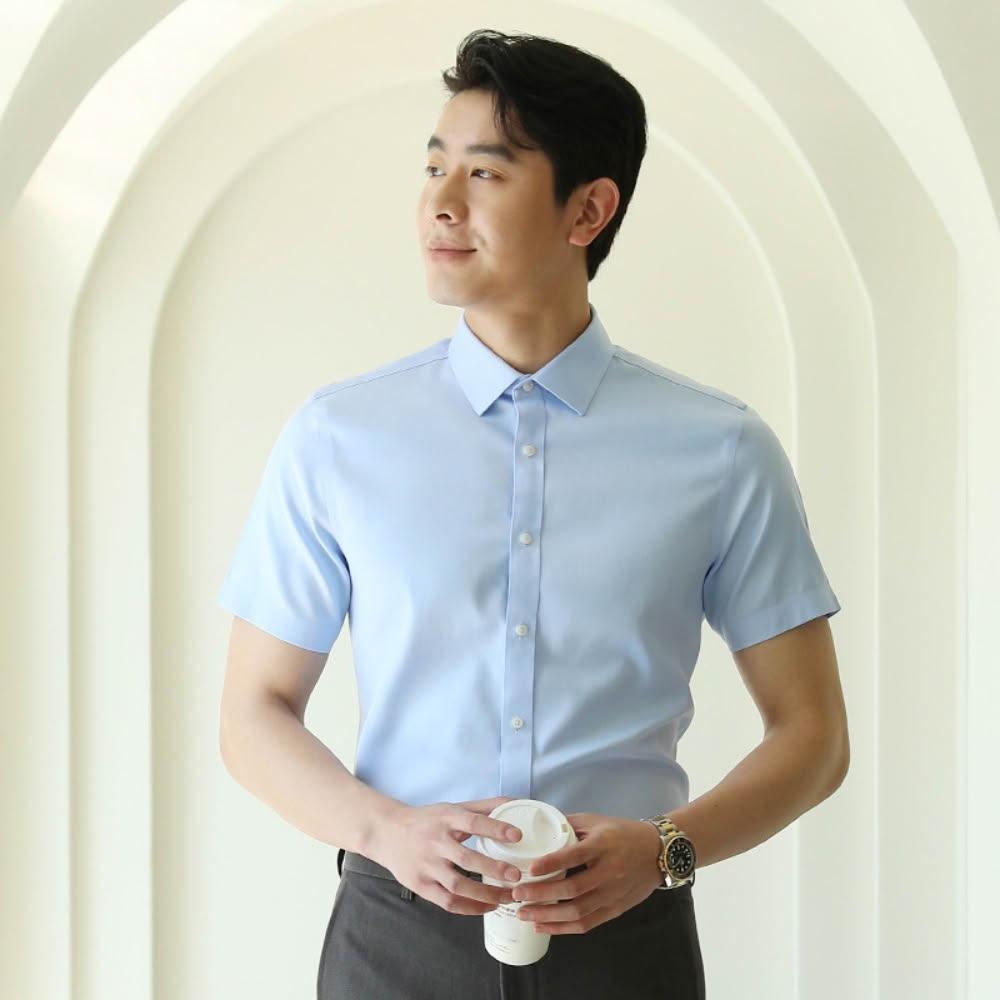 米蘭精品現貨+預購 男短袖高級商務白襯衫西裝外套上衣(抗皺全棉成衣男裝2色74lb6)