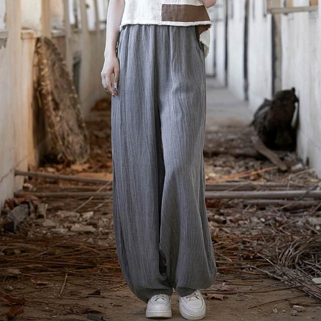 米蘭精品現貨+預購 新中式寬褲棉麻長褲手工亞麻長褲夏季休閒寬鬆女裝大尺碼-寬鬆禪修女褲子4色74lw20