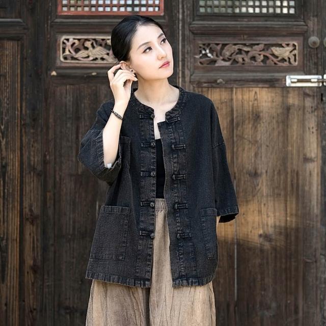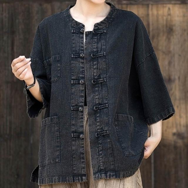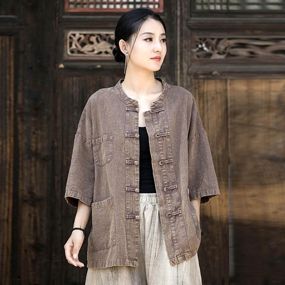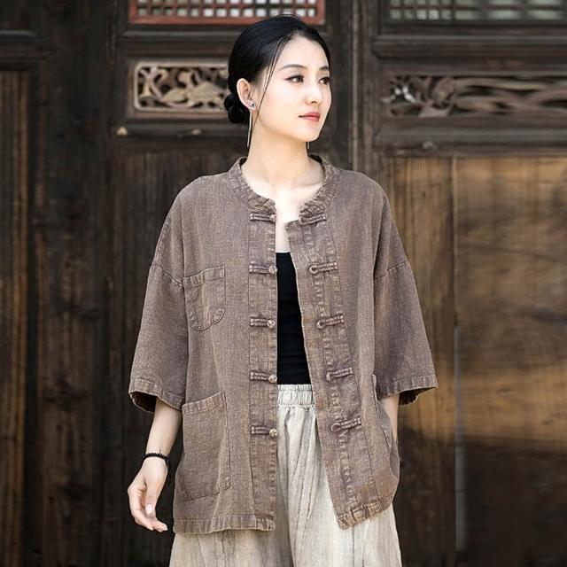 米蘭精品現貨+預購 新中式罩衫棉麻襯衫手工亞麻上衣夏季女裝大尺碼-短袖袖做舊禪意女上衣2色74lw45