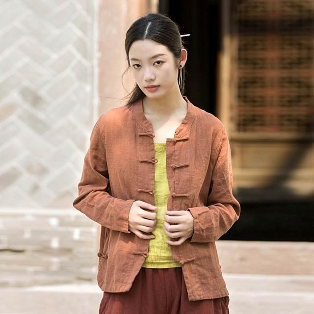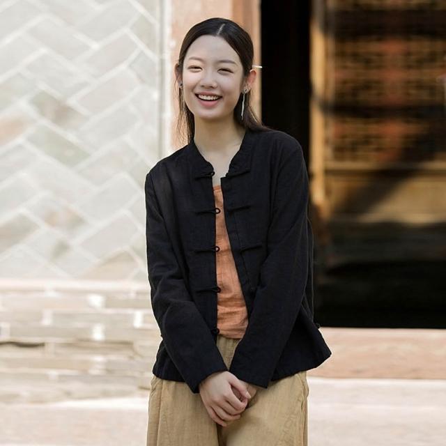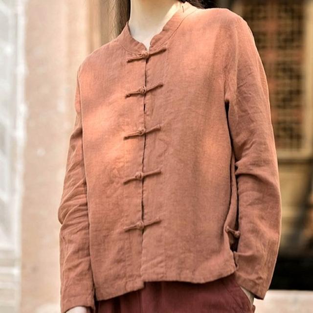 米蘭精品現貨+預購 新中式罩衫棉麻襯衫手工亞麻上衣夏季女裝大尺碼-長袖小立領盤扣女上衣2色74lw60