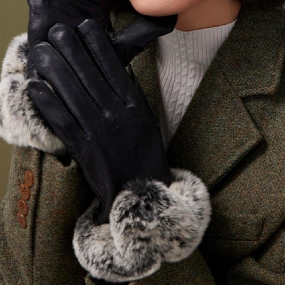 米蘭精品現貨+預購 羊皮手套觸控手套-保暖兔毛防風加厚女配件黑色74jw29