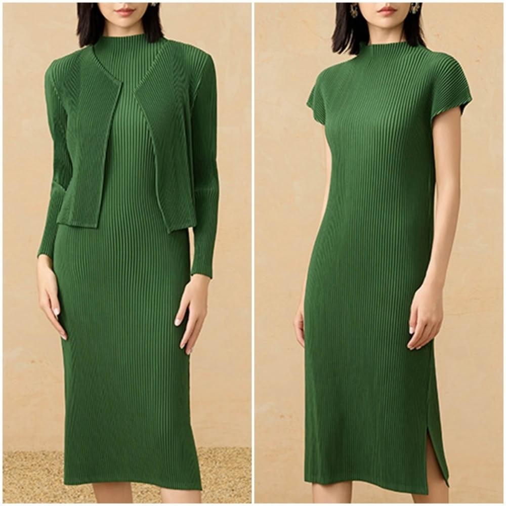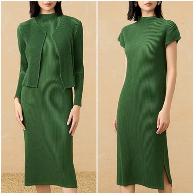 米蘭精品現貨+預購 三宅風上衣褶衣褶皺套裝女無袖上衣長褲折衣彈力女裝摺衣大碼-半高領女裝7色74mm83