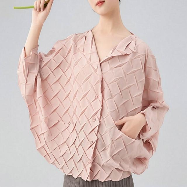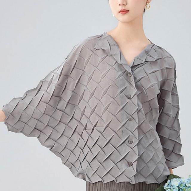 米蘭精品現貨+預購 三宅風皺褶衣服褶皺外套高級摺衣彈力女裝顯瘦折衣大碼-V領單排釦女上衣10色74mm80