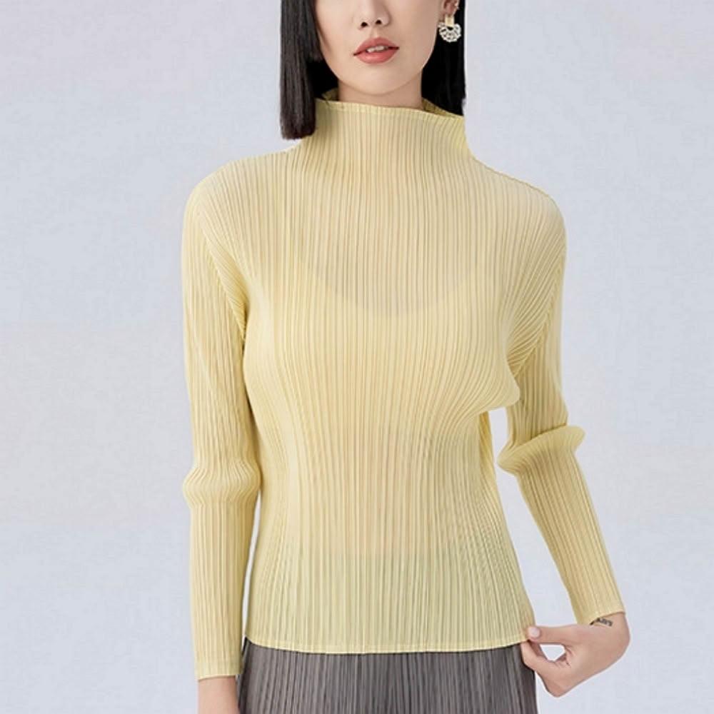 米蘭精品現貨+預購 三宅風皺褶衣服褶皺上衣高級摺衣彈力長袖女裝顯瘦折衣大碼-半高領10色74mm74