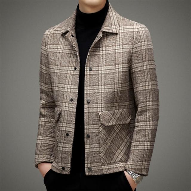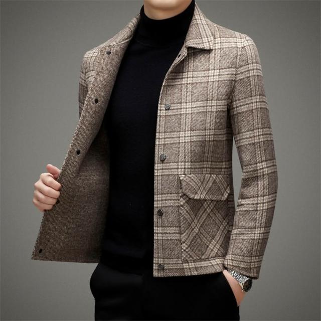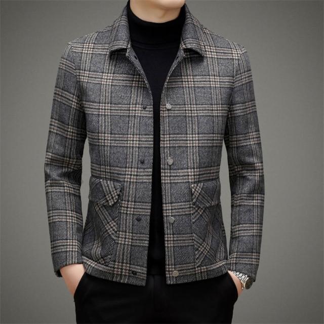 米蘭精品現貨+預購 頂級羊毛夾克外套毛呢大衣風衣西裝寬鬆秋冬大碼休閒男裝-雙面格紋短款2色74mq17