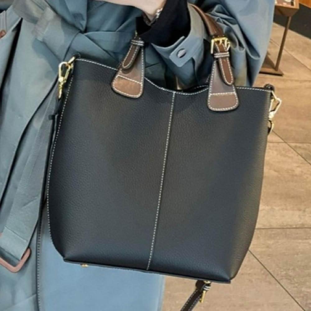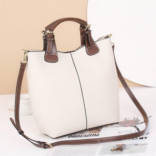 米蘭精品現貨+預購 真牛皮側背包手提包真皮革斜背包單肩包托特包(荔枝紋大容量水桶包女包包4色74mk29)