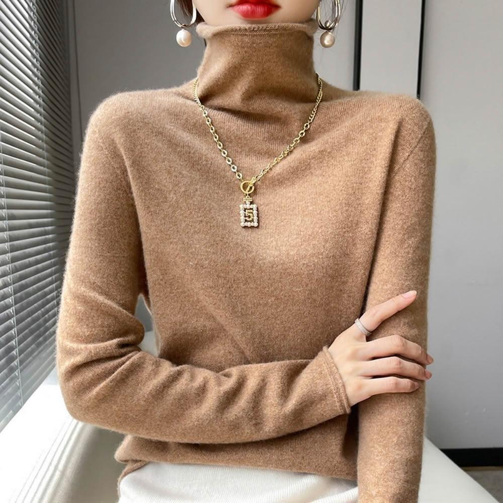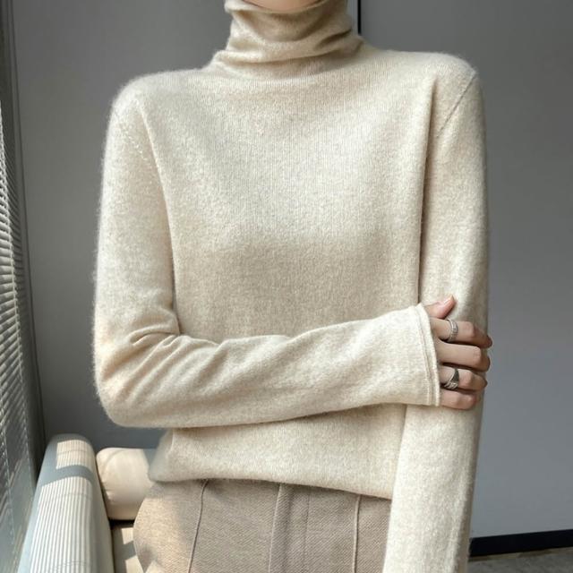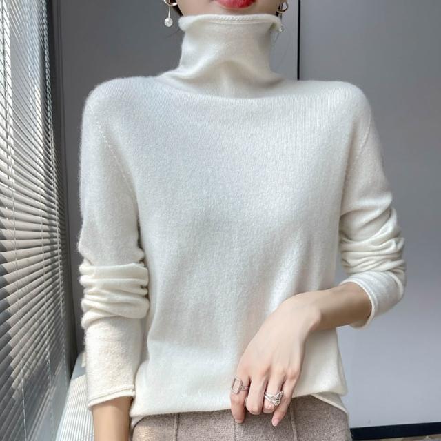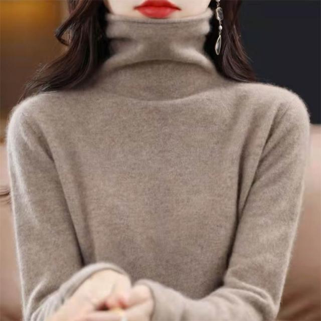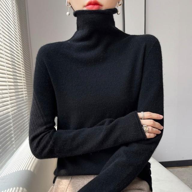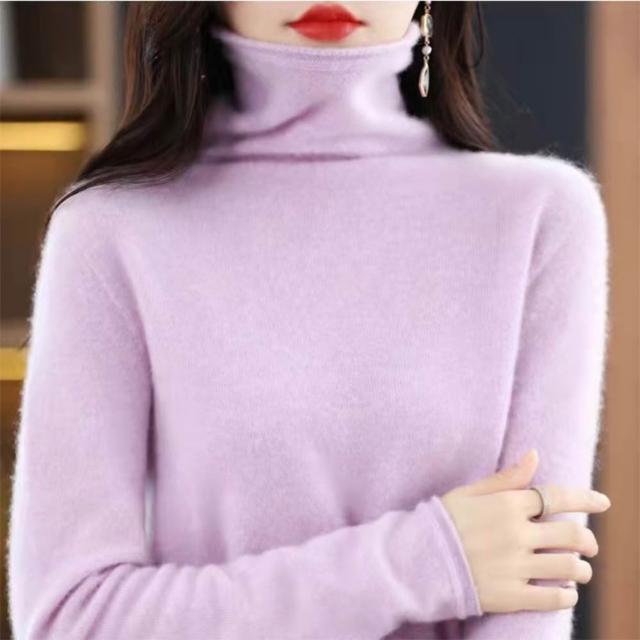 米蘭精品現貨+預購 100%羊毛衣針織衫發熱衣長袖保暖內搭加絨寬鬆大碼休閒-高領純色女上衣9色74nc5