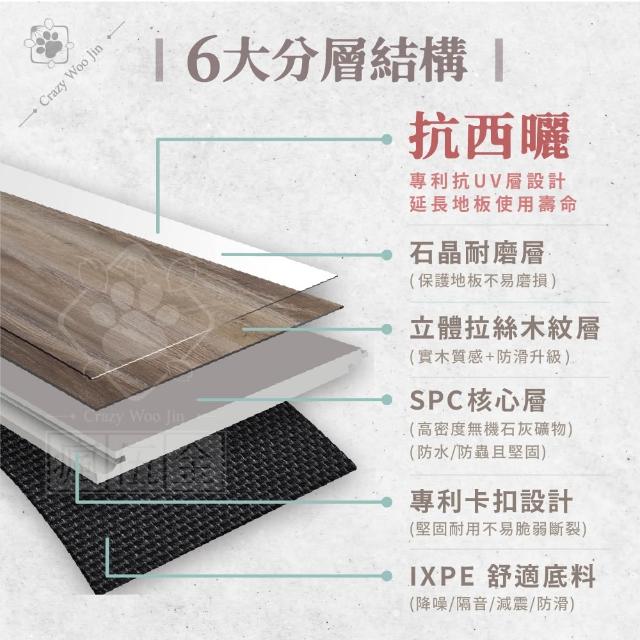 防水SPC石晶卡扣石塑木地板 1箱(8片約0.53坪6mm厚度 免膠 仿實木 靜音 石塑 改造 裝潢