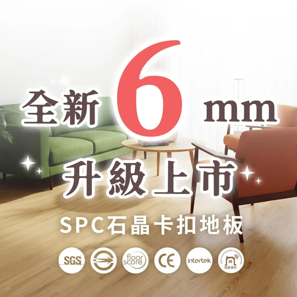 防水SPC石晶卡扣石塑木地板 1箱(8片約0.53坪6mm厚度 免膠 仿實木 靜音 石塑 改造 裝潢