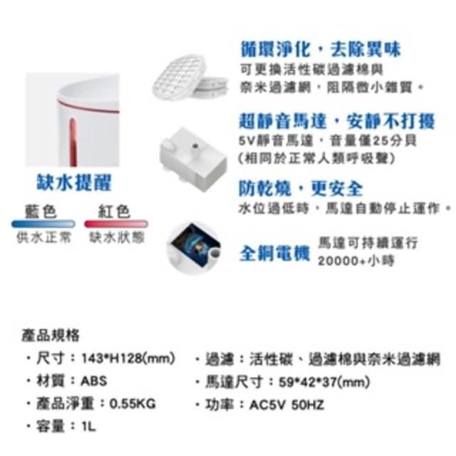 DOGNESS 多尼斯自動飲水機MINI 寵物飲水機(1L 寵物飲水機 犬貓適用 白色 粉色 過濾片 貓咪飲水)