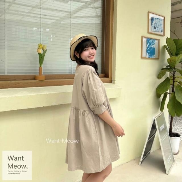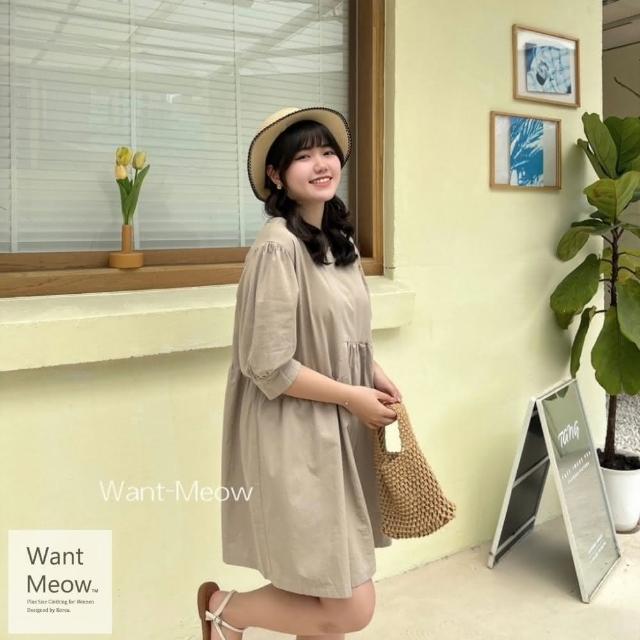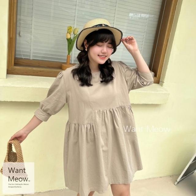 Want-Meow90公斤可穿/小個女孩顯瘦短袖韓系小洋裝大碼洋裝/大尺碼/韓系歐膩穿搭/孕婦裝