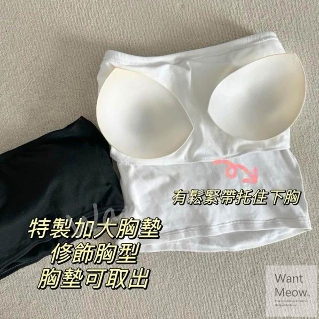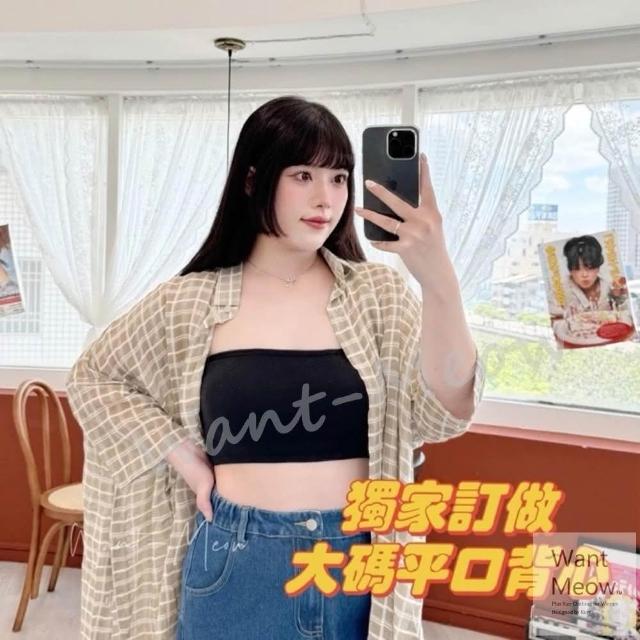 Want-Meow100公斤可穿/獨家訂做質感棉短版一字平口bra背心/平口內衣/附胸墊大尺碼/加大碼/禮服 一字領