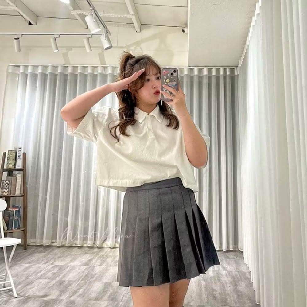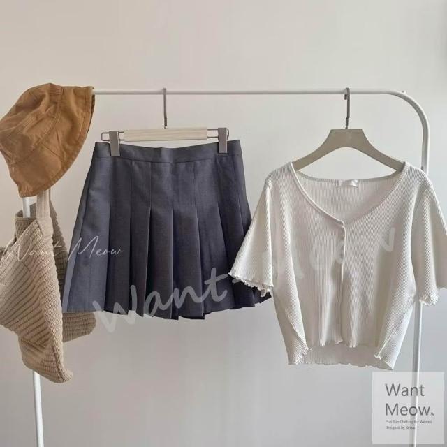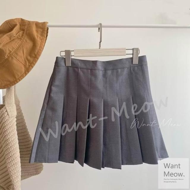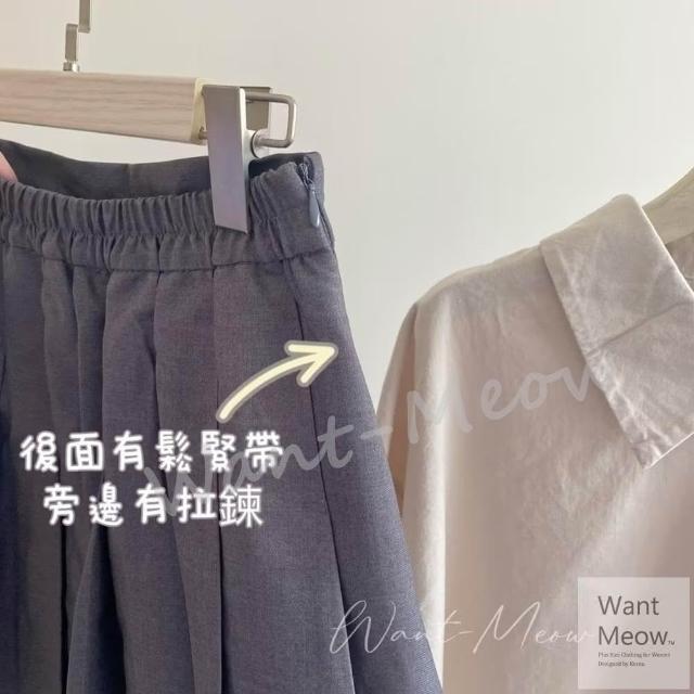 Want-Meow90公斤可穿/灰色防曝光韓系高腰百褶有安全褲褲裙/褲裙/百褶裙/大碼/大尺碼/加大碼