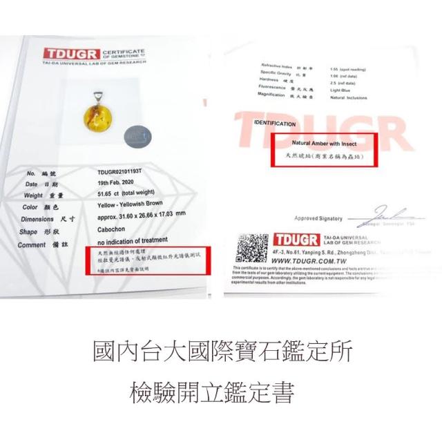 有寶石鑑定書/天然琥珀蟲珀