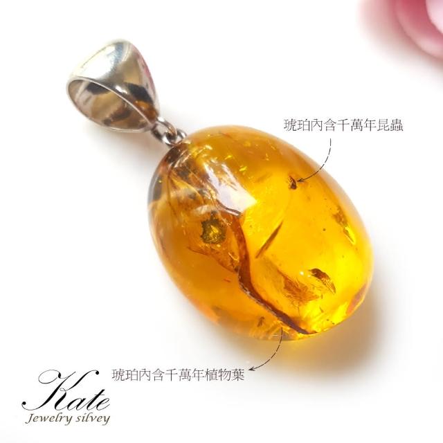 KATE銀飾 稀有蟲珀波羅的海天然琥珀純銀項鍊(琥珀蜜蠟 蟲珀 琥珀項鍊 純銀項鍊 生日禮物 母親節禮物)