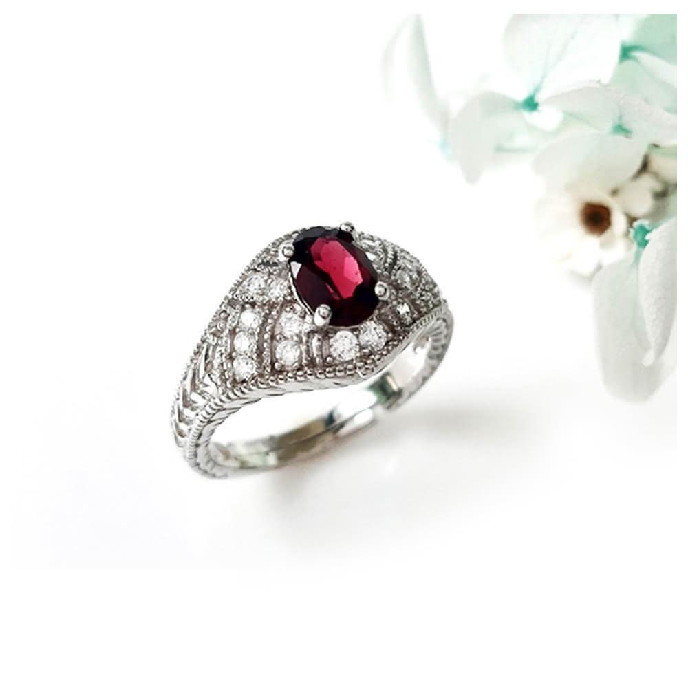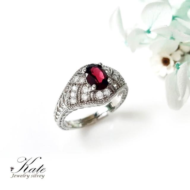 KATE銀飾 緞帶天然紅石榴石戒指(一月生日石 純銀戒指 活圍 生日禮物 情人禮物)
