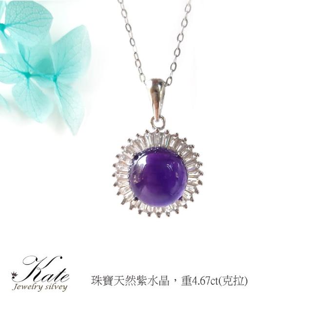 KATE銀飾 圓潤亮麗天然紫水晶純銀項(紫水晶 純銀項鍊 紫水晶項鍊 二月生日石 生日禮物 情人禮物)