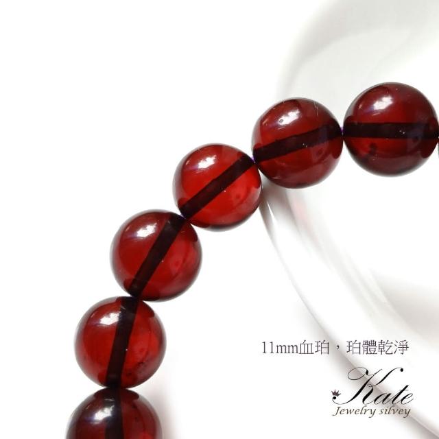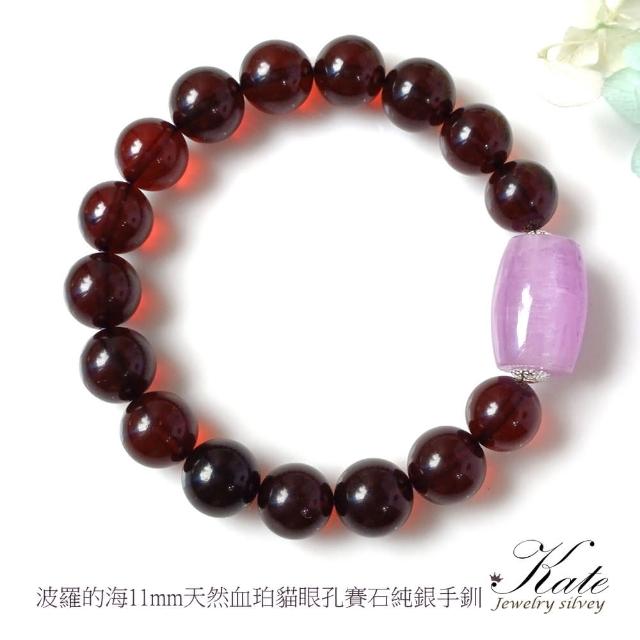 KATE銀飾 手工設計高淨體11mm天然琥珀孔賽石純銀手環(孔賽石 琥珀手串 血珀 生日禮物 情人禮物)