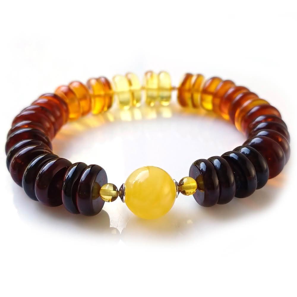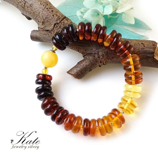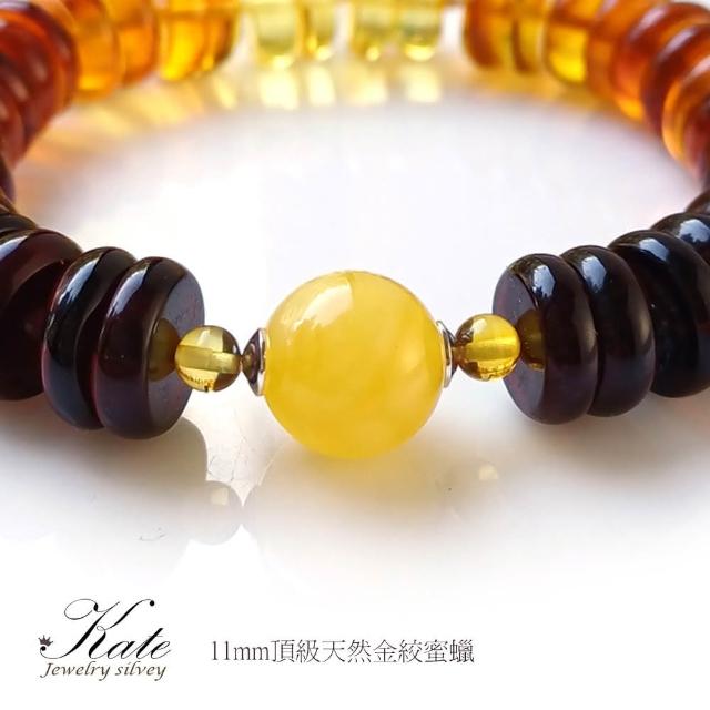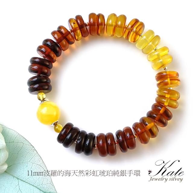 KATE銀飾 開運招財11mm天然琥珀蜜蠟手環手珠(波羅的海琥珀 琥珀手鍊 彩虹琥珀 生日禮物)