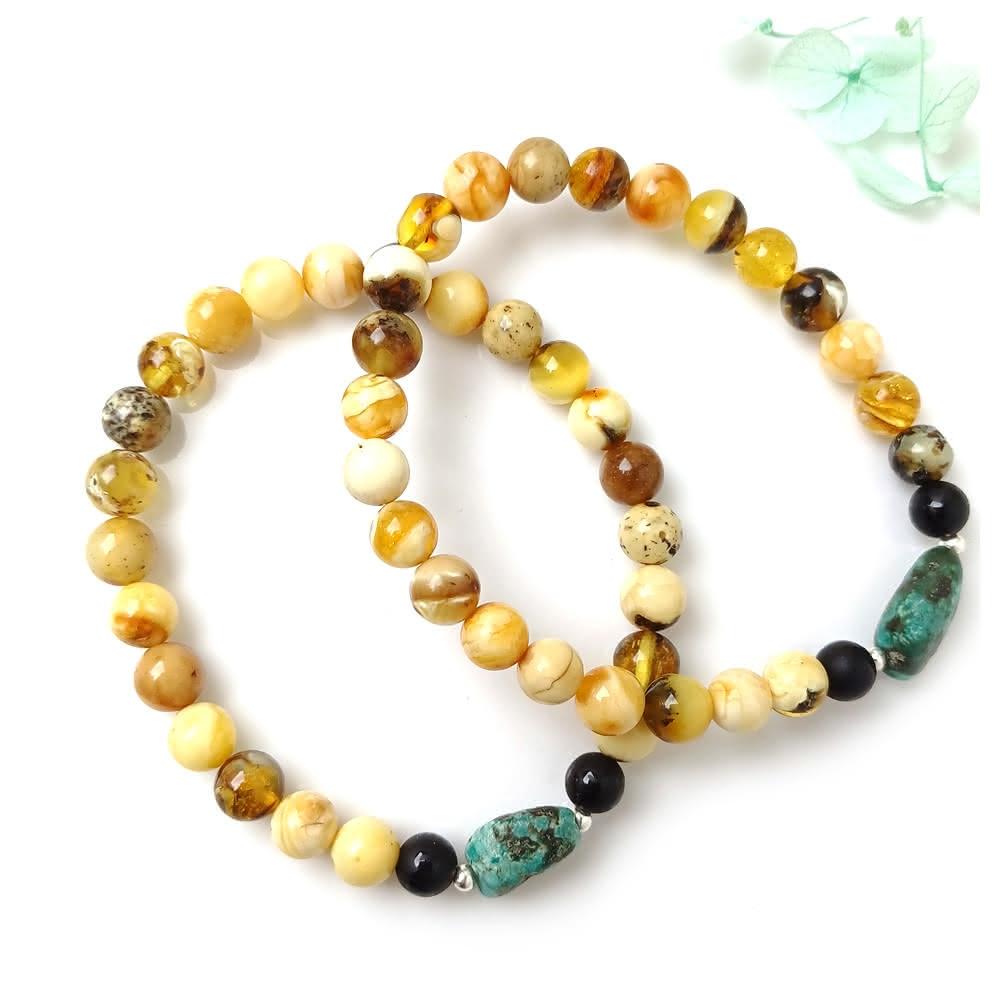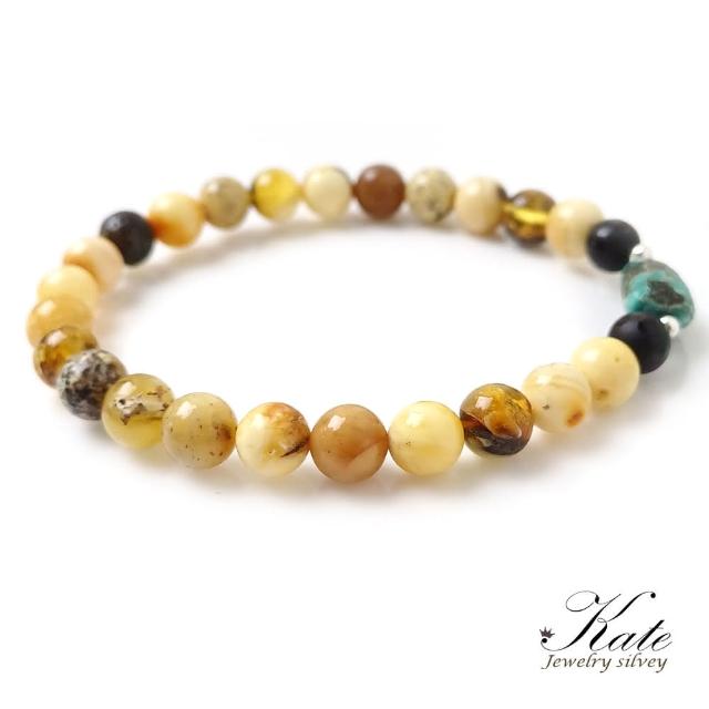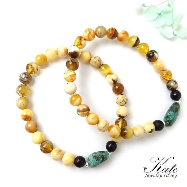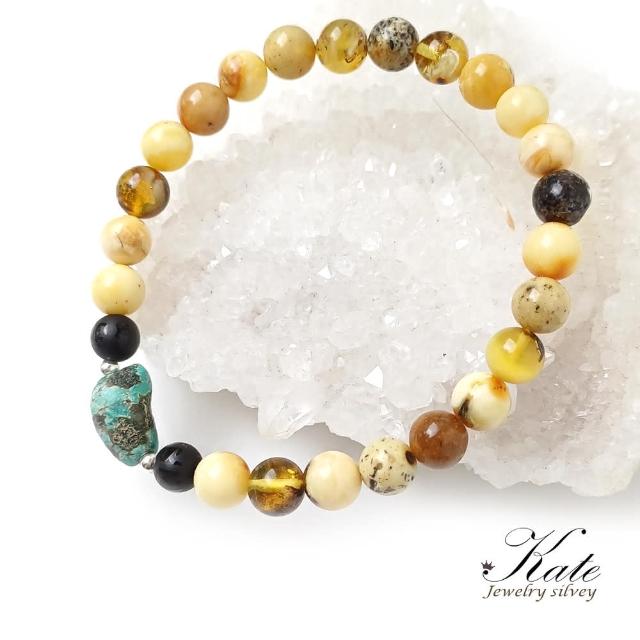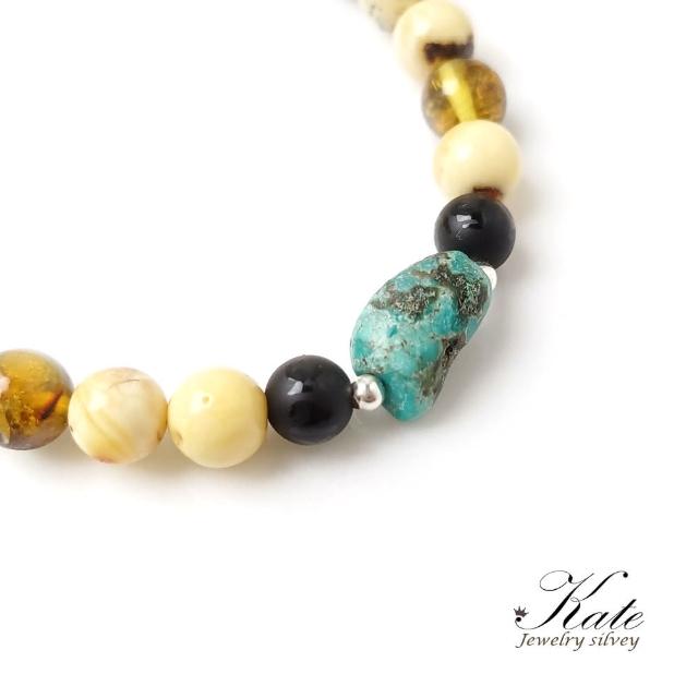 KATE銀飾 手工設計天然白蜜蠟奧利奧琥珀手環 白花蜜蠟手珠 波羅的海琥珀 土耳其石 生日禮物 情人禮物