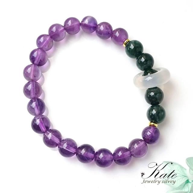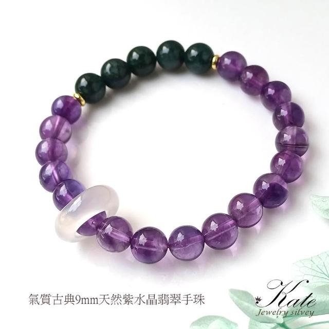 KATE銀飾 優雅古典9mm天然紫水晶翡翠手環 紫水晶手珠 白玉髓 翡翠手珠 智慧石 生日石 生日禮物 情人禮物
