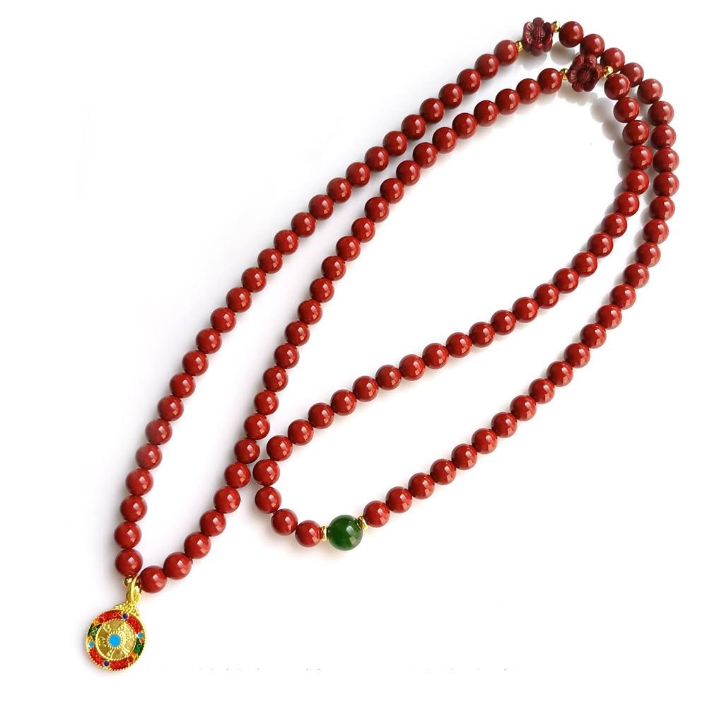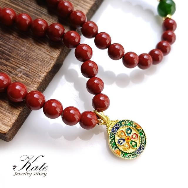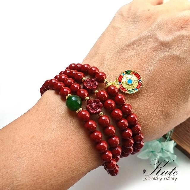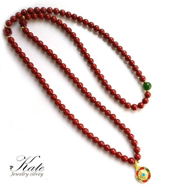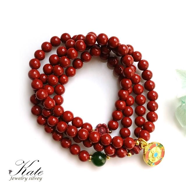 KATE銀飾 108顆帝王紅天然硃砂六字箴言念珠 108顆手串 避邪擋煞 硃砂手珠 硃砂佛珠 硃砂念珠 生日禮物 情人禮物