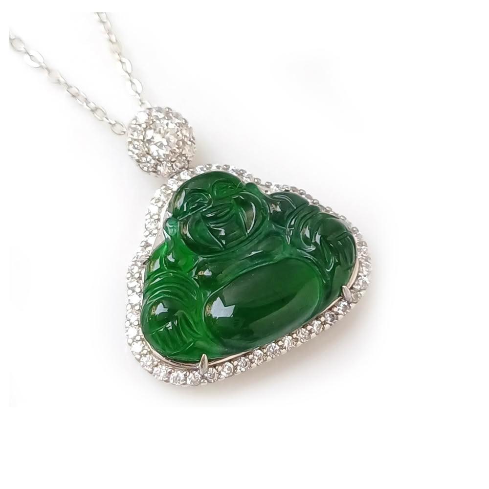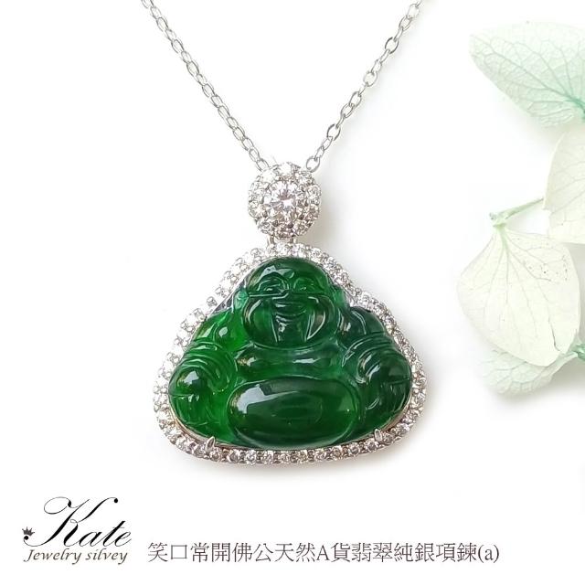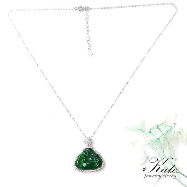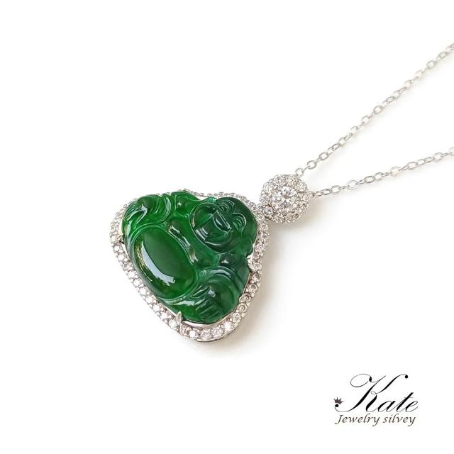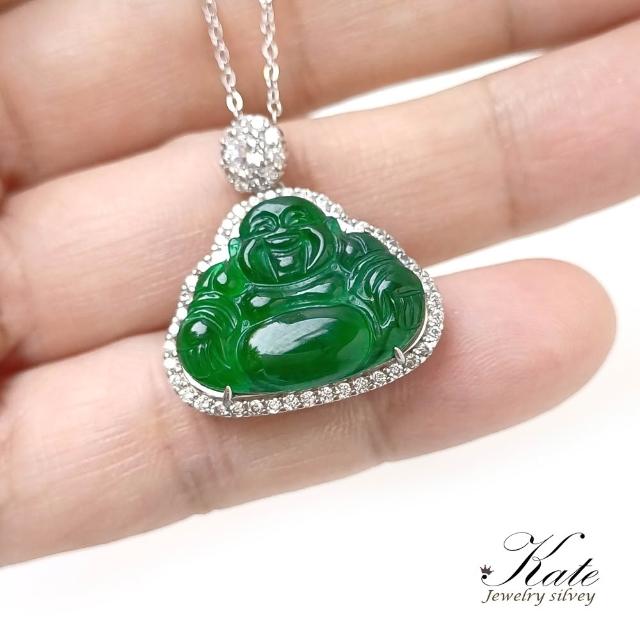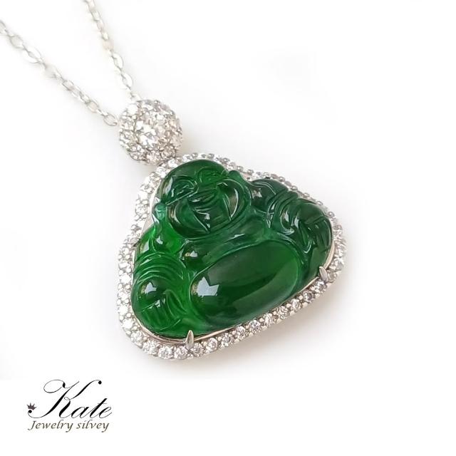 KATE銀飾 彌勒佛冰種天然A貨滿綠翡翠純銀項鍊 冰種翡翠 彌勒佛翡翠 玉佛公項鍊 笑口常開 生日禮物 母親禮物