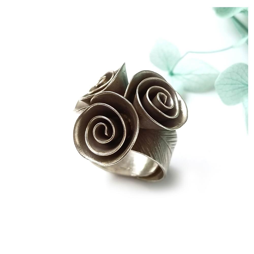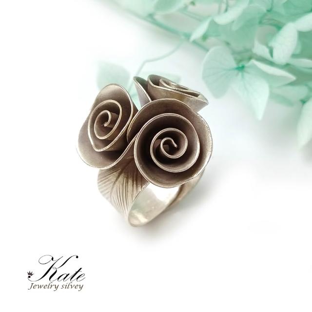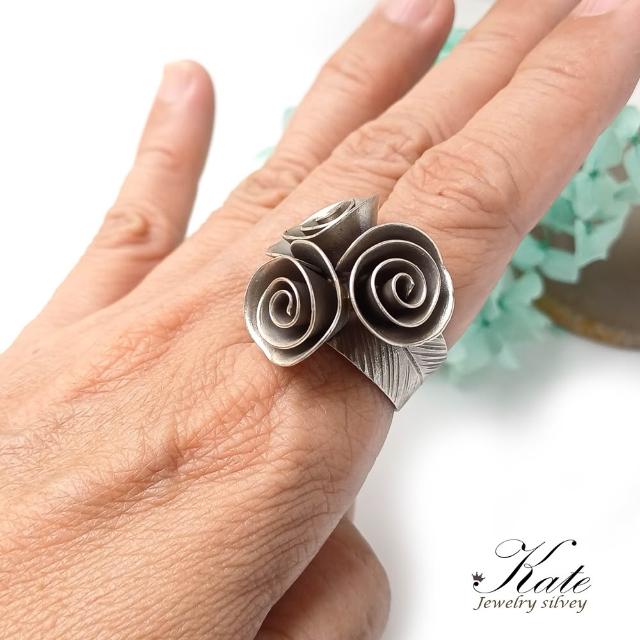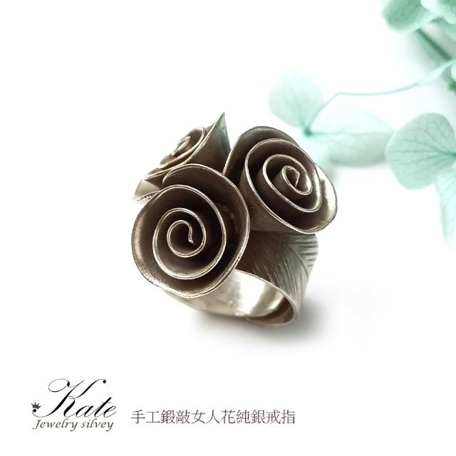 KATE銀飾 手工鍛敲沙漠玫瑰寬版純銀戒指 玫瑰花戒指 活圍戒指 女人花 手工戒指 波西米亞風 生日禮物 情人禮物