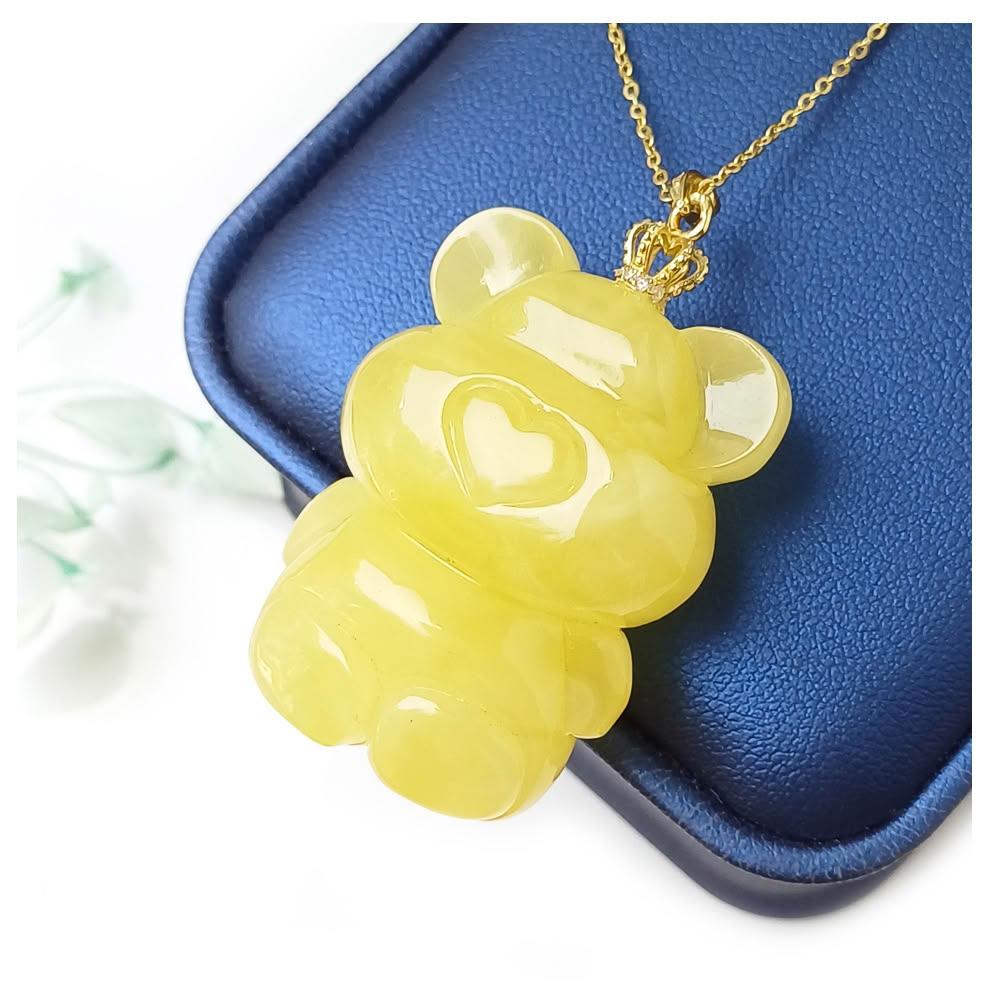 KATE銀飾 小熊蜜蠟 小皇冠暴力熊天然白花蜜蠟純銀項鍊 頂級波羅的海琥珀 蜜蠟項鍊 蜜蠟熊 琥珀蜜蠟 生日禮物 手工禮物