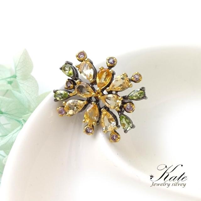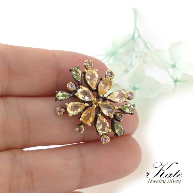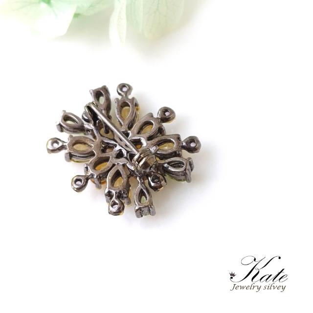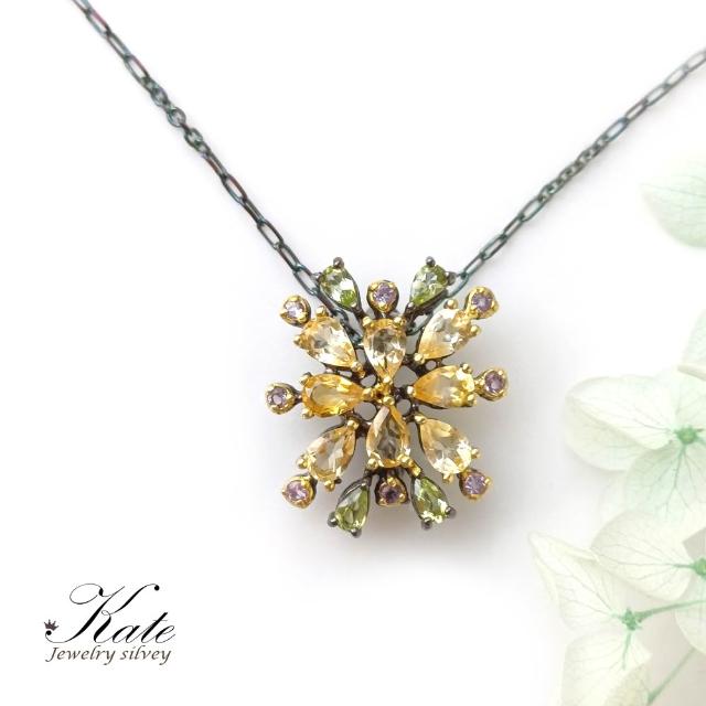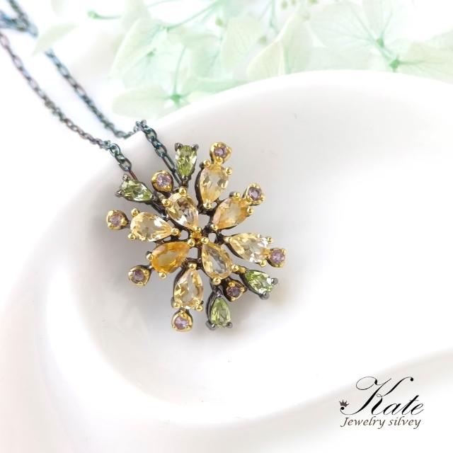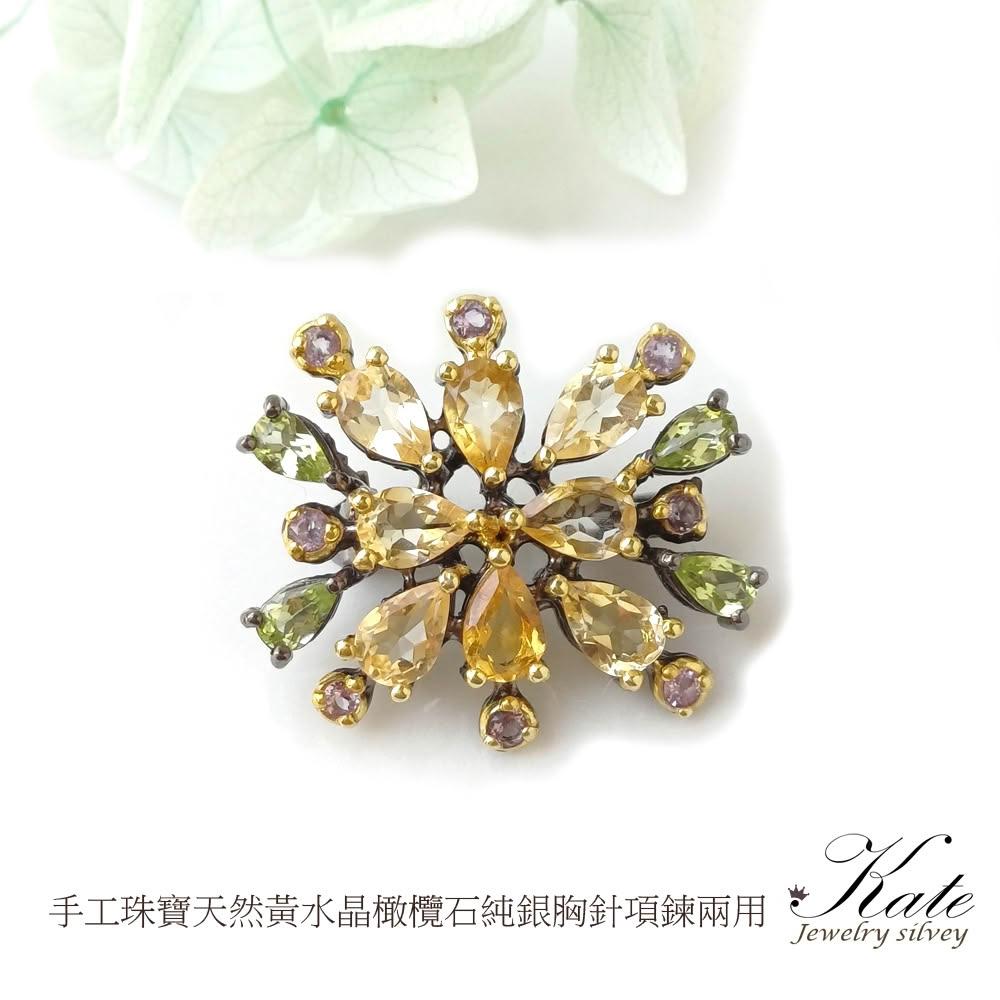 KATE銀飾 手工款天然黃水晶橄欖石純銀胸針項鍊 黃水晶項鍊 招財水晶 花形胸針 生日禮物 情人禮物