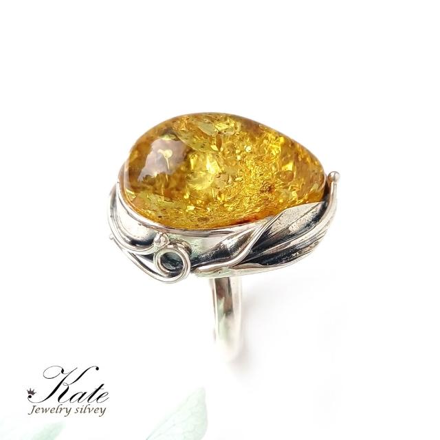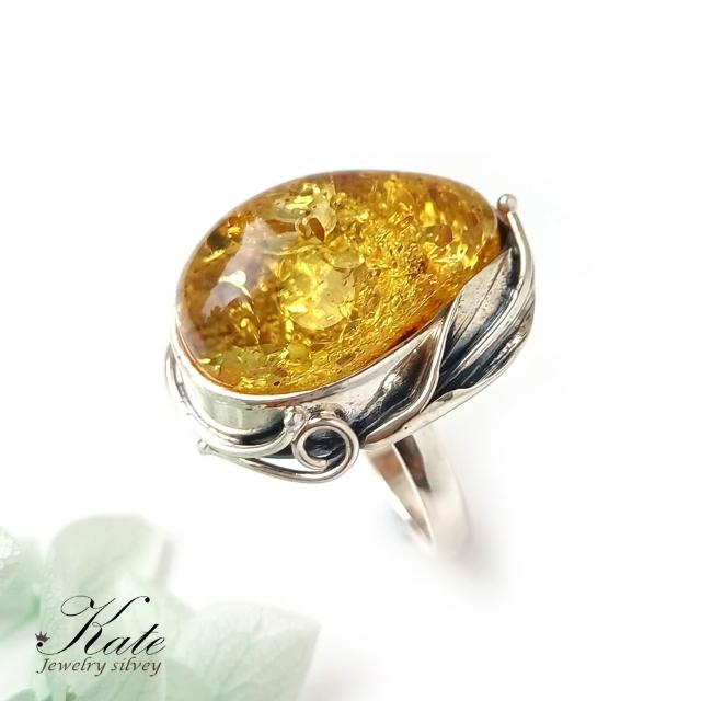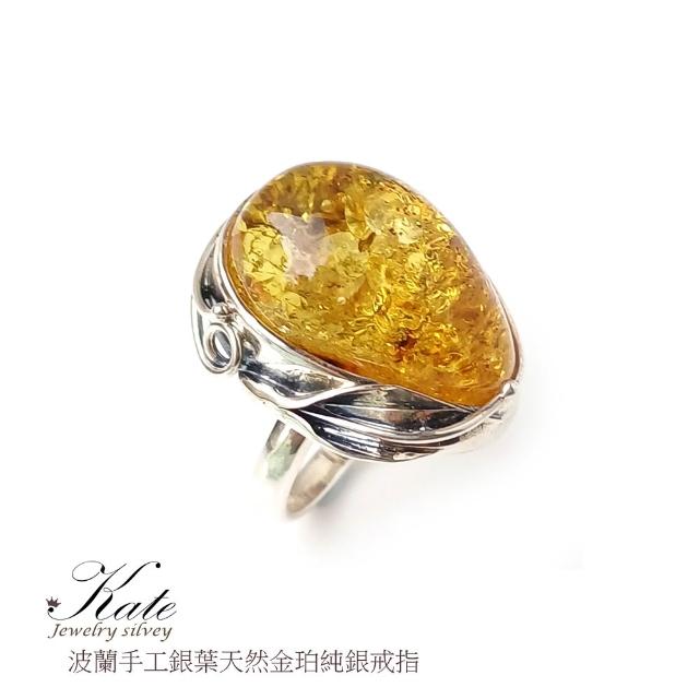 KATE銀飾 波蘭天然琥珀手工銀葉純銀戒指 天然琥珀 金珀 手工琥珀戒指 大顆琥珀原礦 生日禮物 情人禮物