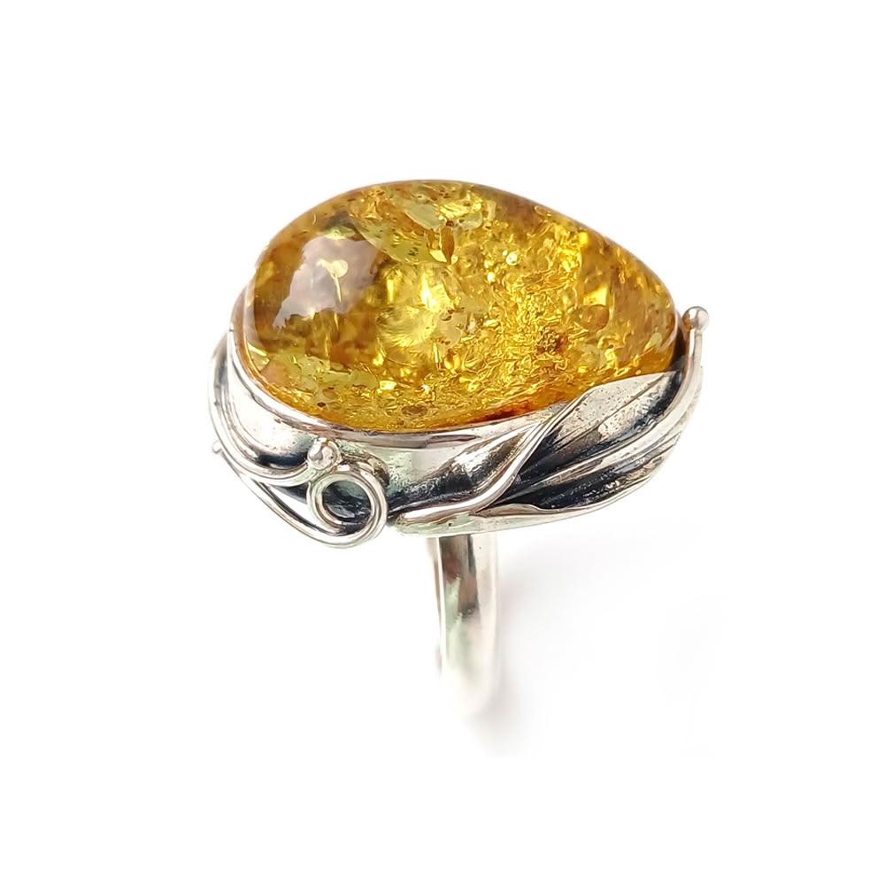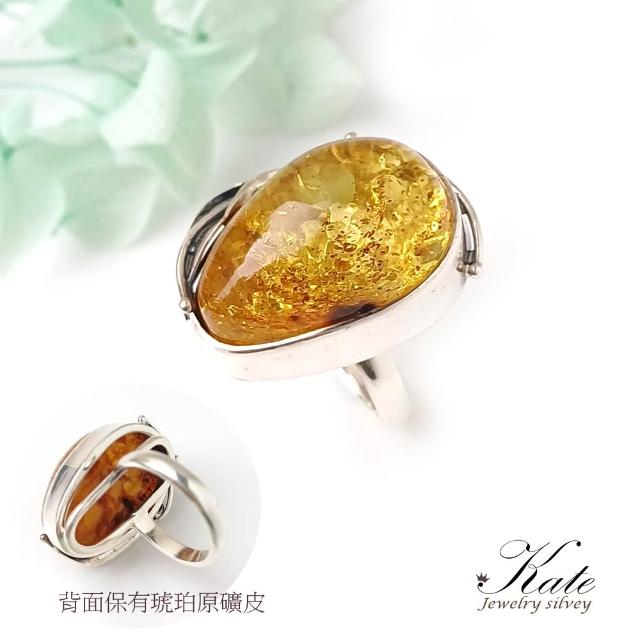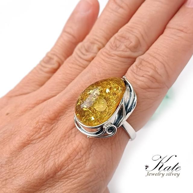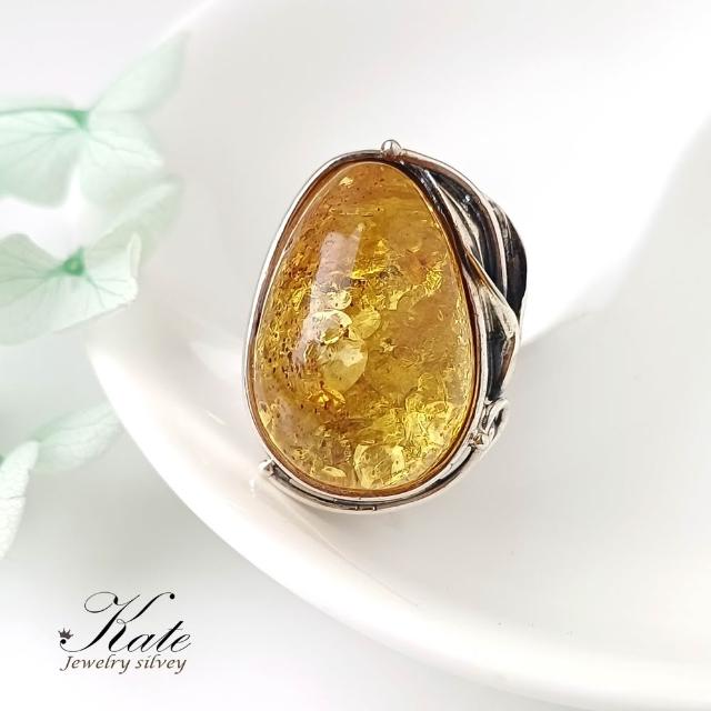 KATE銀飾 波蘭天然琥珀手工銀葉純銀戒指 天然琥珀 金珀 手工琥珀戒指 大顆琥珀原礦 生日禮物 情人禮物