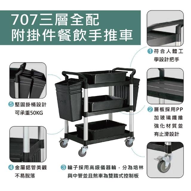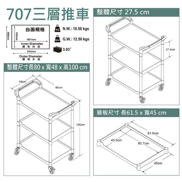 MIT 小型三層多功能餐車 手推車 BHS-707A-3(收納推車 置物推車 工廠推車 飯店餐飲推車)