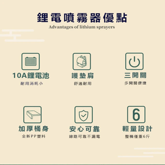 • 續航久,充滿電可噴10-15桶