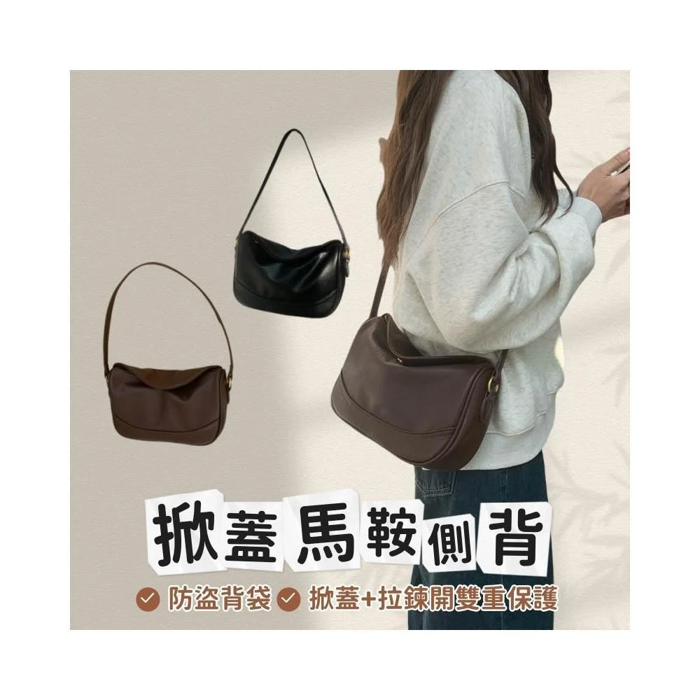 復古掀蓋半圓側背包/隨身質感馬鞍包/小資簡約肩背包/雙背帶