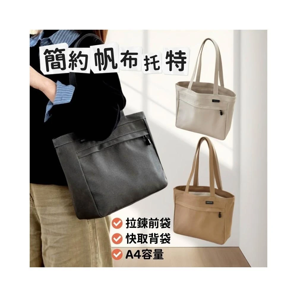 簡約帆布托特包/手提包/肩背包/帆布包/A4容量帆布袋/托特手提包