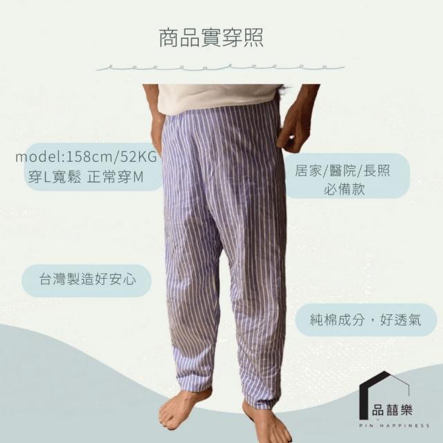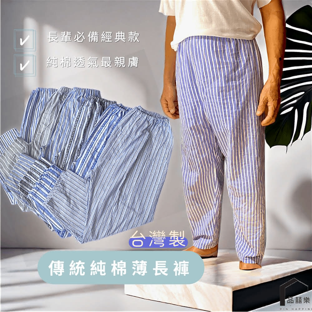 PIN HAPPINESS台灣製純棉開檔男生薄長褲(中老年 老人褲 銀髮族 居家褲)