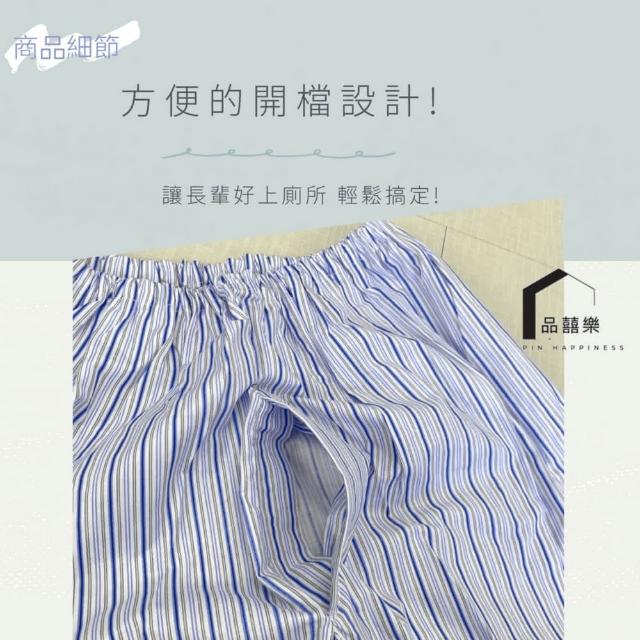 PIN HAPPINESS台灣製純棉開檔男生薄長褲(中老年 老人褲 銀髮族 居家褲)