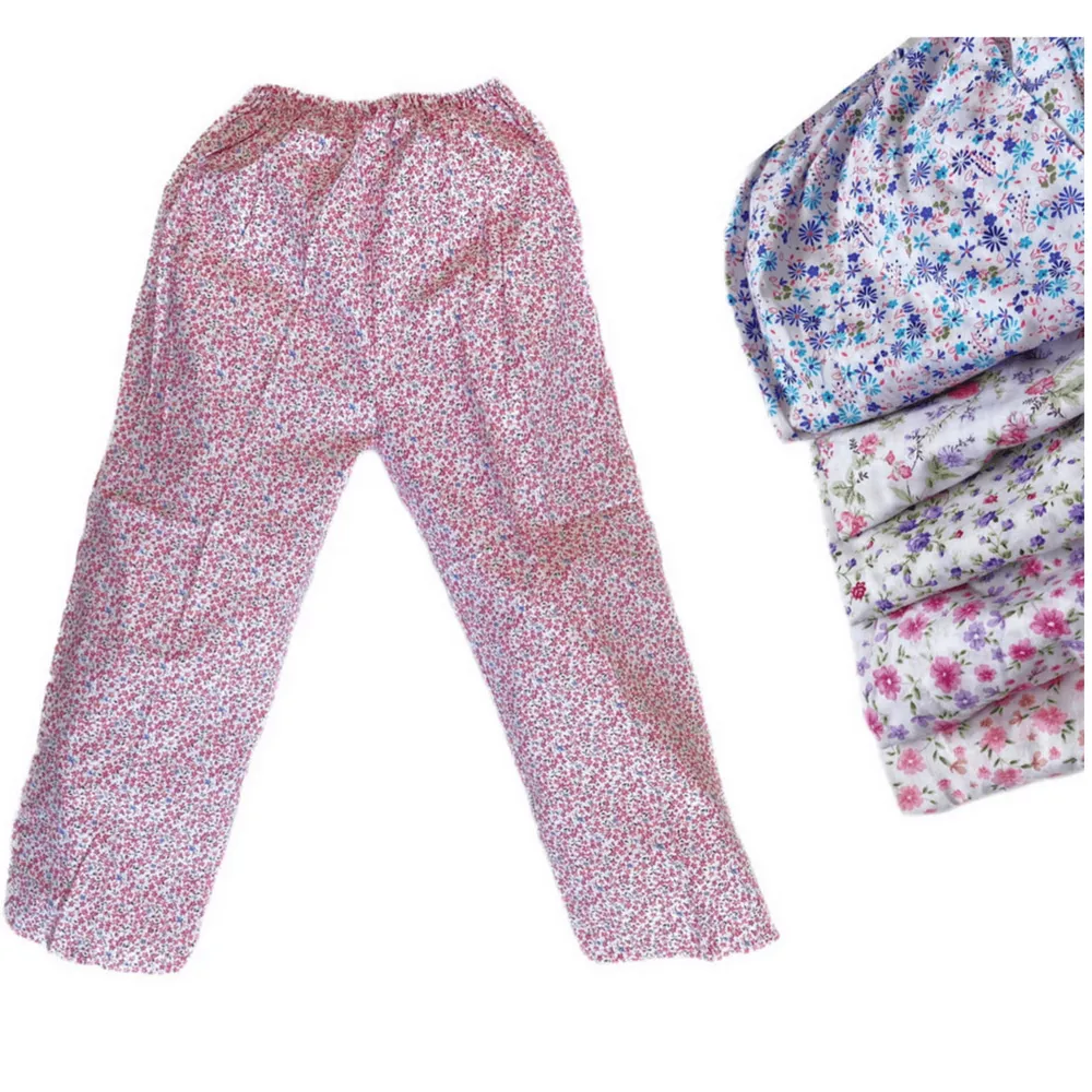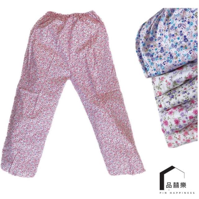 PIN HAPPINESS台灣製純棉女碎花薄長褲(老人居家褲 銀髮族 樂齡族家居褲)
